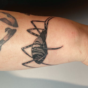I would say there are elements of being quite graphics-based, but also fairly organic with the subject matter with a little traditional influence thrown in. I’m very drawn to patterns at the moment and playing around with a slightly weirder direction with things. It’s hard to balance when you’re an apprentice; to just draw what you really want to and hope people get it, or draw things more palatable so that you get more practice. I’m now at a point with enough experience that I can draw what I really like and what I would be more than happy to have tattooed myself. When you are confident in your own style and who you are, people will naturally eventually take notice.