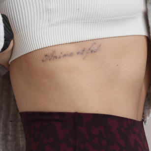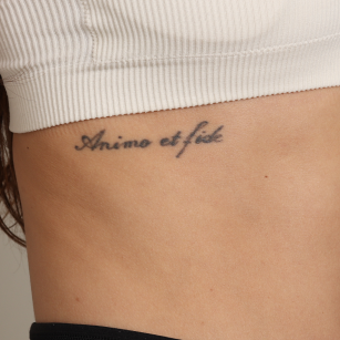 Jade came to NAAMA to remove a script tattoo on her ribs.