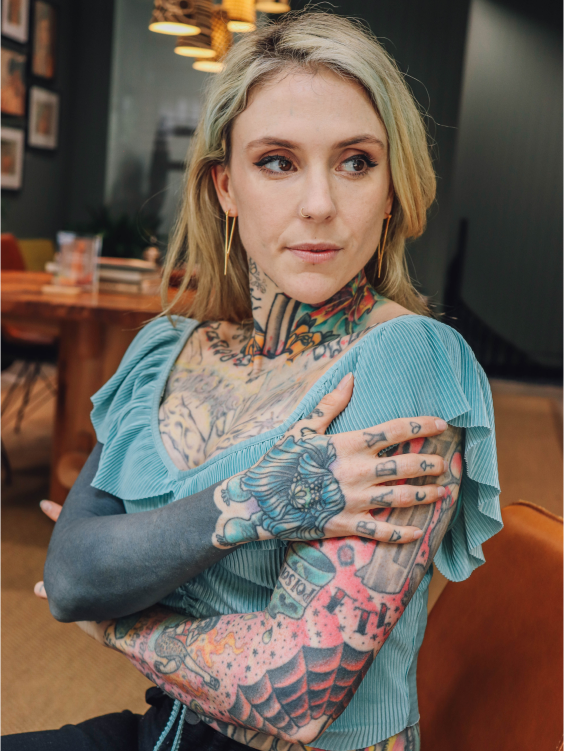 I’m Lucky and I’m a sword swallower. When I was growing up, I always felt a little bit different - like I didn’t fit in. I think a lot of us feel like that when we're young. I started to get tattoos way before I knew that I would be into the arts or circus stuff I’m into now. I waited until I turned 18 years old to get my first tattoo. Then over the years, I got a little bit more exposure to tattoo culture. There was this website I used to visit all about body modification. It was one of the first online places you could go and really see tattoos, piercings, split tongues - all that kind of stuff. Everyone was so confident making these changes to their bodies. I knew I wanted to try that too, so I slowly started getting more and more tattoos all over. Being able to change my body however I wanted made me feel in control of my world.